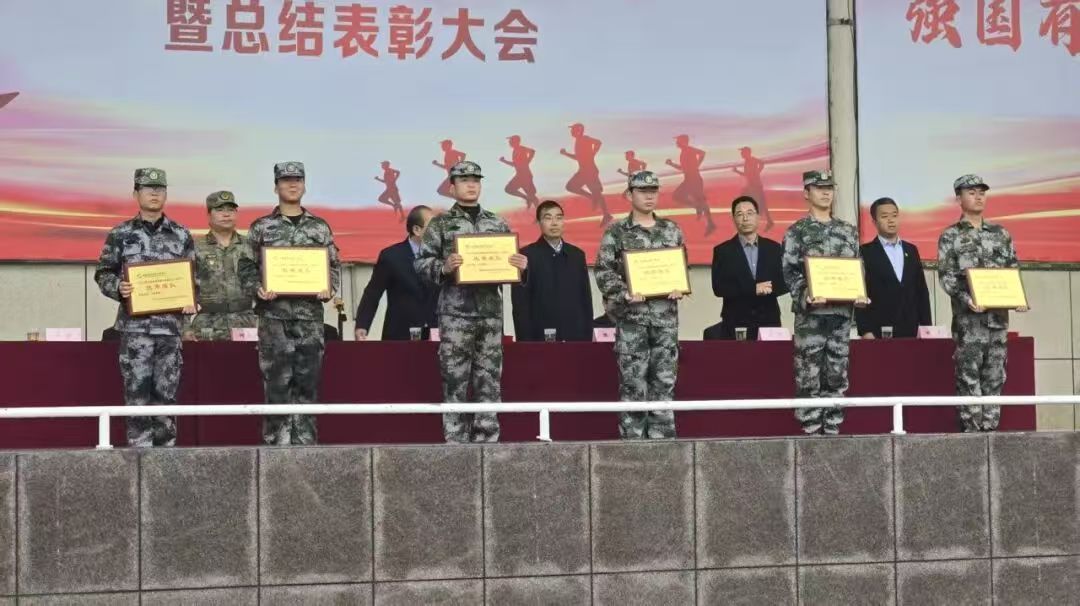 在总结表彰环节,学院副院长滕勇宣读了《嘉奖通令》。“优秀连队”“优秀教官“优秀指导员”“军训标兵”“优秀学员”代表依次上台,主席台领导为获奖集体和个人颁发了荣誉证书。
