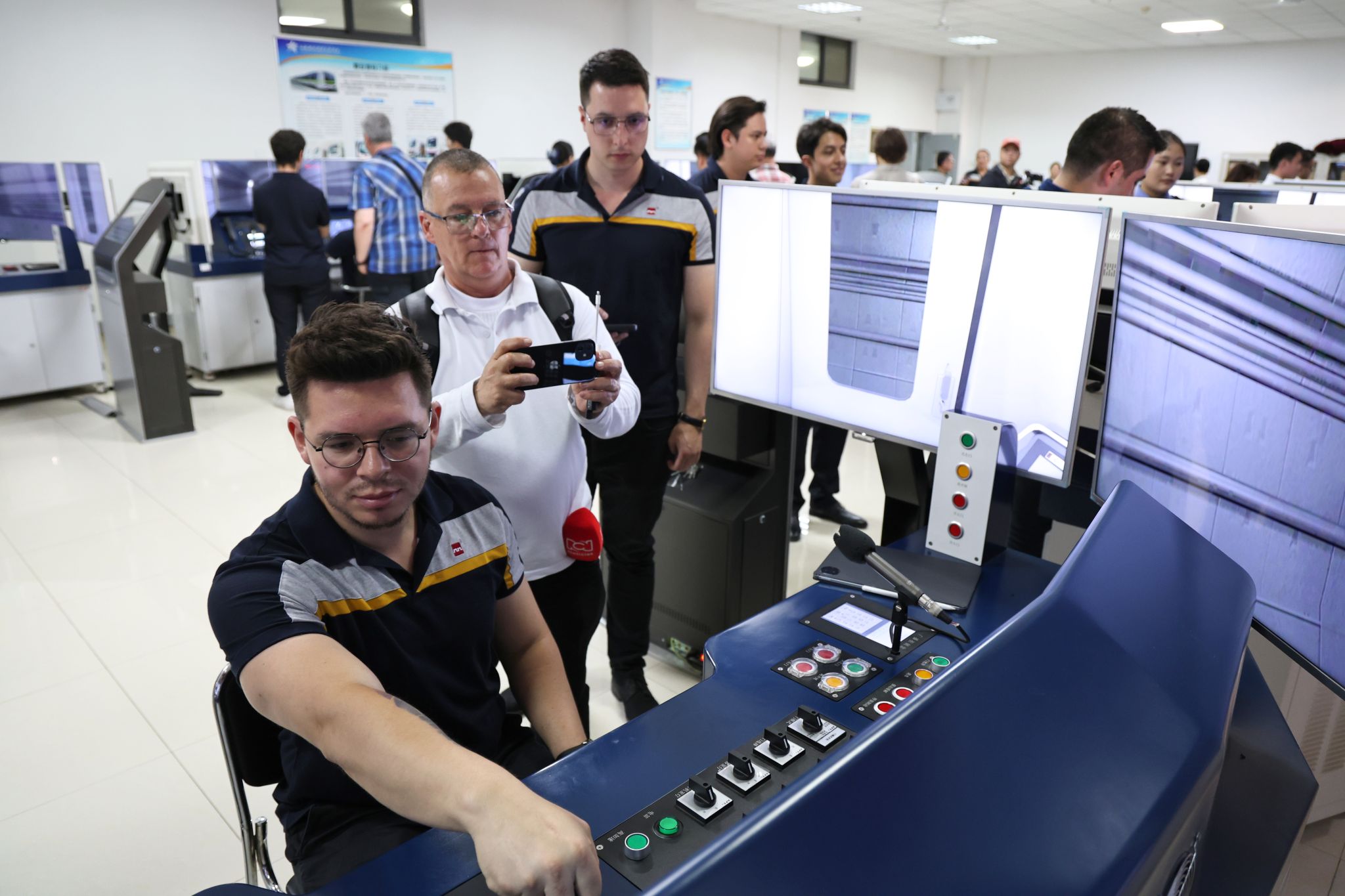 在我校外事工作团队的陪同下,代表团还深入课堂和牵引动力学院实训室,观摩了学员的“中文+职业技能”相关课程,记者们对学院的师资力量、先进的实训设施给予充分肯定,并与学员亲切互动,采访了解他们在理论学习、实操训练、文化适应及日常生活等方面的情况。学员们纷纷表示,在系统学习运营管理、供电等专业知识技能的同时,也深刻体验了中国与哥伦比亚文化的不同和特色,生活充实而多彩。